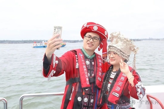 东兴中越界河风景区市场部经理何欣燃表示,东兴市民政局竹山结婚登记户外颁证点在东兴中越界河风景区正式启用,通过“户外颁证+景区体验”的模式,让年轻人在办理结婚登记这一人生重要时刻,既能沉浸式感受祖国边境的秀丽风光,也能深入了解界碑背后的家国故事与文化内涵,让新人结婚的体验更独特、更难忘。